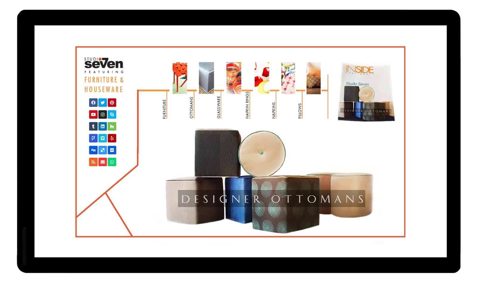 This website design was created to be used as a sales tool to enable this designer to sell his brand of designer ottomans to Neiman Marcus and several hotel chains. The website advertised an art gallery style showroom that he used to showcase the ottomans as well as the rest of the line he created of designer household items.